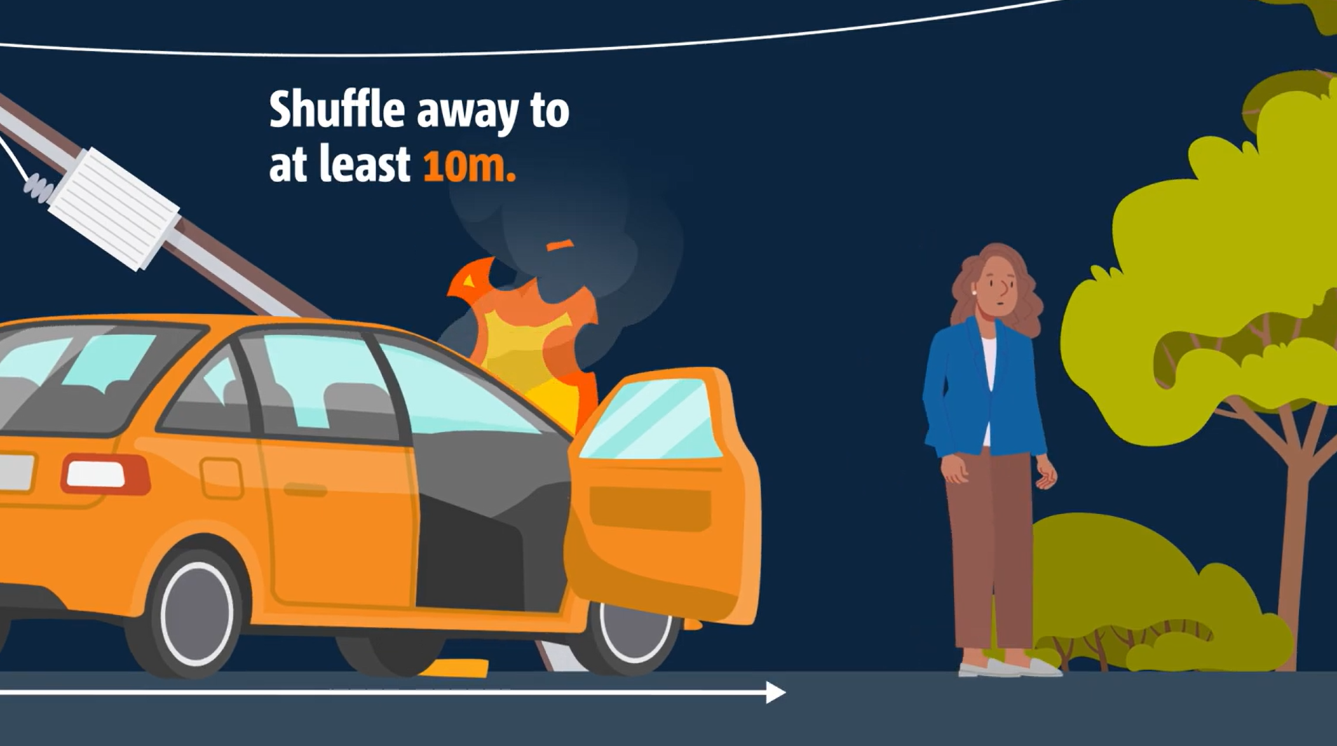 - Stay back: Maintain a distance of at least 10 metres (the length of a bus) from the fallen line and anything it is touching.